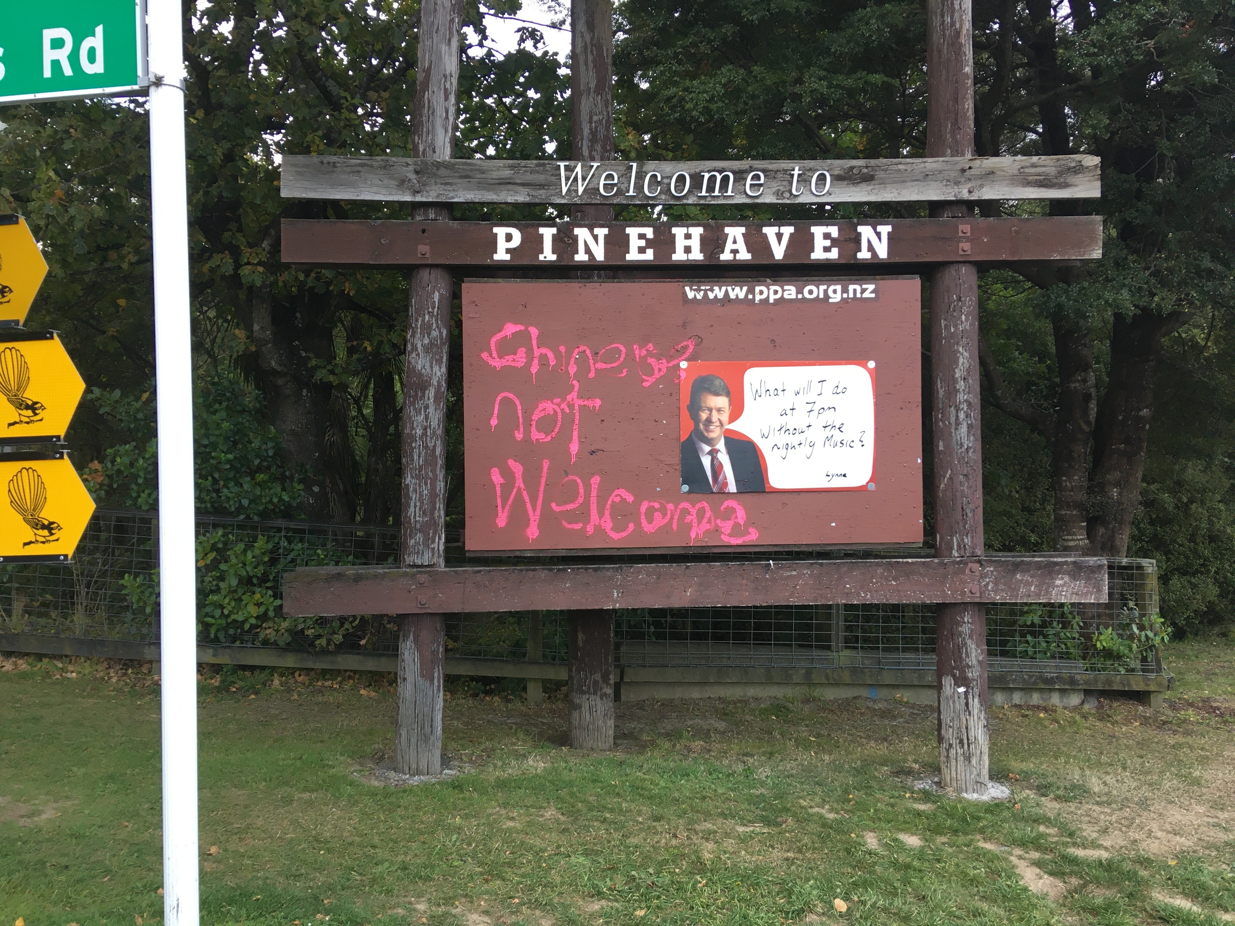 Racist graffiti on community noticeboard, Upper Hutt, 1 May 2020. Museum of New Zealand Te Papa Tongarewa (O.048937)