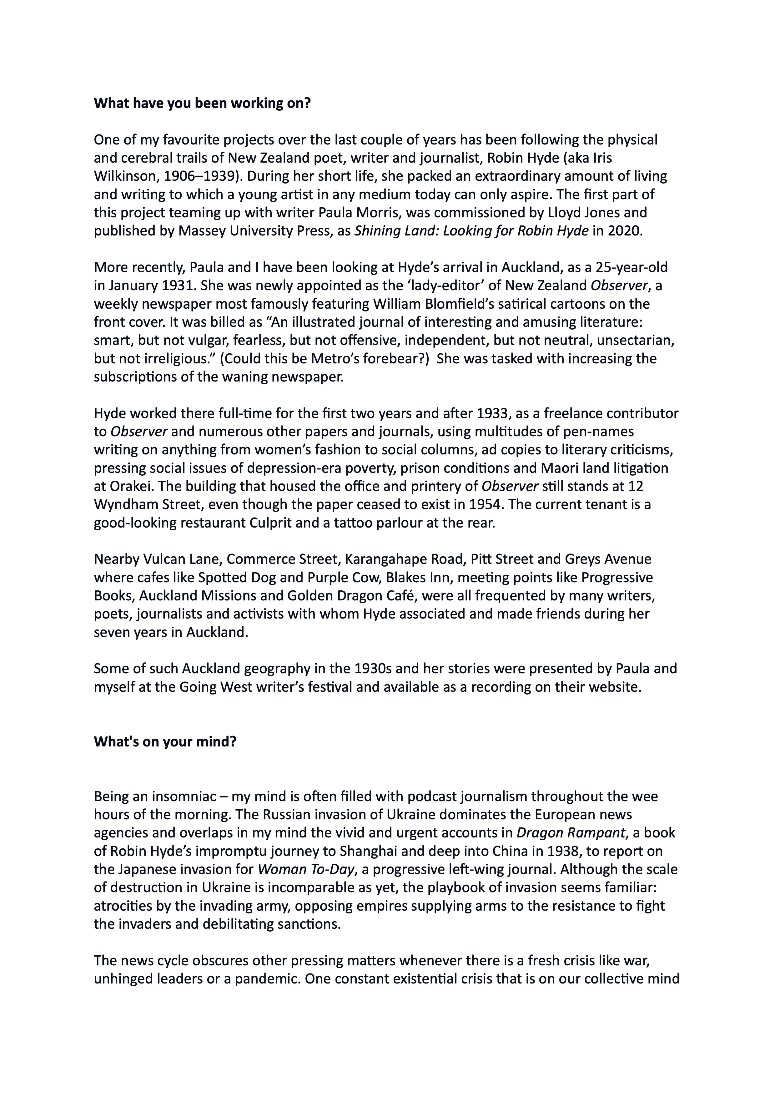 2020 — Shining Land: Looking for Robin Hyde with Paula Morris, Massey University