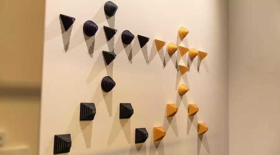 In MAHAMAYA (1997) at Te Tuhi, he employed formal aspects of divine geometry, a common Hindu visual tradition found in temples, creating geometric forms from mixed pigments and moulds, placing them on the gallery walls to create an abstracted human shape, similar to a stick figure. Yatri describes this imagery as “the visual-phonetic qualities of Sanskrit letter forms which themselves are representations of the Divine mother - SHAKTI MA.”