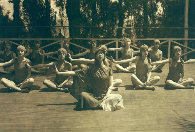 Ruth St. Denis and her Denishawn dancers in 'yoga meditation', 1915. New York Public Library Digital Collections (b21043974)